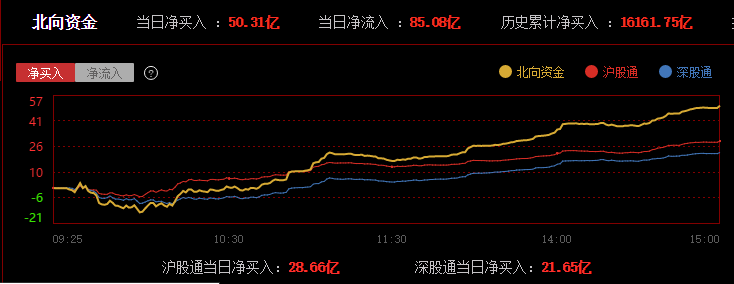北向资金全天大幅净买入50.3亿元 终结连续5日净卖出