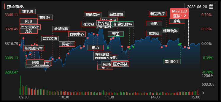 一、市场状况分析 今天指数再度分化,从早盘深成明显强于上证,截止收盘沪指收报3315.43点,跌0.04%,成交额5278亿元。深成指收报12487.13点,涨1.27%,成交额6308亿元。创业板指收报2710.14点,涨1.99%,成交额2185亿元。全市场成交量达到11645亿,连续第七个交易日破万亿。北向资金全天净卖出97.03亿元;其中沪股通净卖出46.32亿元,深股通净卖出50.71亿元。 从分类指数来看,明显的深强沪弱,其中深证100涨幅达到1.65%。而创业板指数涨幅高达1.99%。 板块方面,早盘新能源相关板块涨幅较高,其中光伏,风电等板块强势拉升,风电板块再次掀起涨停潮;其次厨卫电气板块截止收盘涨幅居前,全天大涨5.16%;汽车板块再次爆发,其中汽车热管理上涨3.76%,涨幅居前;教育板块继续上行,其中豆神教育5月27日开始从2.8一路上涨到今天的6.73,涨幅高达140.35%。 涨跌分布上,个股涨多跌少,两市3233支股飘红。涨跌停对比上来看,涨停个股105家,跌停个股13家。琼中一字板个股6家,连板个股27家。其中铖昌科技连续11天涨停板,该股票为新股,到目前未开板。集泰股份连续7个涨停板。 二.市场信息及解读 1.今天市场信息层面上,东方航空单日航班量创今年4月以来的新高,从最低值240班逐步恢复至当天计划执行的1274班,这是东航自6月10日以来实现的单日航班量连续第11天超千班。东方作为上海本地最大的主基地航空公司,东航航班的恢复说明国内疫情后的经济和出行秩序正在逐渐恢复,航空类公司今天也表现亮眼,航空运输指数上涨3.24%,个股上华夏航空,中国东航,春秋航空和中国国航涨幅都超过4个点。 2.另一个需要引起关注的消息是近期关于美国取消部分对中关税的问题,美国财政部长耶伦(Janet Yellen)19日接受美国广播公司ABC访问提到,特朗普时代沿用至今的部分对中关税已经“毫无战略意义”,并称拜登政府正重新检视,同时考虑移除它们,作为缓解美国当前面臨的高通胀的手段。耶伦说,“我们继承的关税,毫无战略意义,反而提高了消费者的成本”。但耶伦并未明确点名是哪些关税项目,且不透露何时会做出决定。取消贸易战的对中关税对于美国的通胀会有一定的抑制作用,对国内A股也是利好,毕竟关税降低会增加国内外贸商品的竞争力,对国内机电等产品构成利好。 注:以上观点仅作参考,不作为任何操作依据 |