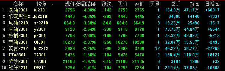 三大指数收盘再次下挫,国内商品期货收盘走势分化 燃料油跌近5% ...