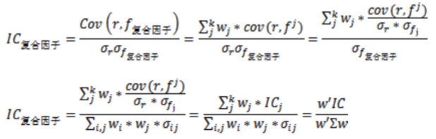 在分析时,我们实际上可将这 k 个因子看做是一个复合因子,复合因子对于每个股票的打分为fi。那么复合因子单期的IC可被表述为: