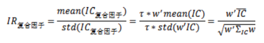 当因子截面值协方差恒定时,复合因子的 IR 则可表述为: